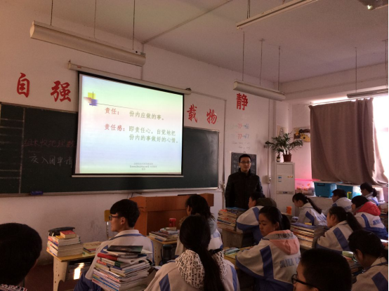 为培养学生的责任感,端正当代中学生的思想意识,12月7日上午,高二年级统一组织了以“学会关爱,勇于担当”为主题的班会课。各班主任认真组织,通过课件展示和学生现身说法等方式让学生认识到“什么是责任”以及“如何学会担当责任”,加强了学生的思想素质教育,起到了良好的效果。