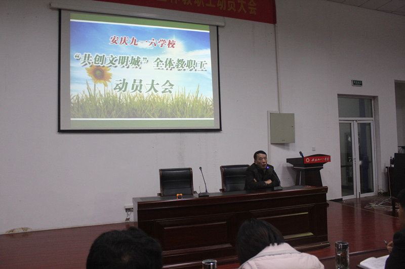 12月8日晚,我校召开了“共创文明城”动员会议。会议由副校长李一雄主持,全体教职工参加了会议。