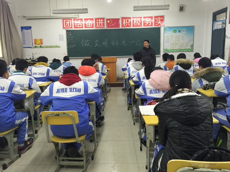 元月18日,初三年级开展了一次“做一个文明的九一六人”的主题班会。班会上,班主任们从“文明”二字入手,在“对自己、对他人、对集体、对社会”四个方面对学生进行教育。学生们积极讨论,明确如何做一个文明的九一六人,并就自身不文明的现象进行了自省。