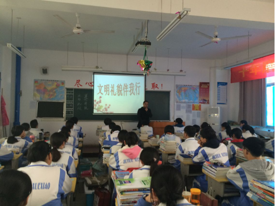 为积极响应学校提出的“平安校园,文明校园”创建口号,提高学生的文明素养和安全意识,规范学生的行为习惯,进一步提升年级组文明创建活动的效果,3月7日上午班会课,高二年级认真组织开展了“文明伴我行”教育活动。活动之前,年级进行了认真的布置,制作了统一的多媒体课件,充分利用各种图片资料进行说服教育,同时结合身边的事例让同学们谈感想。通过多种形式的交流,提高了同学们的意识,产生了积极的影响。