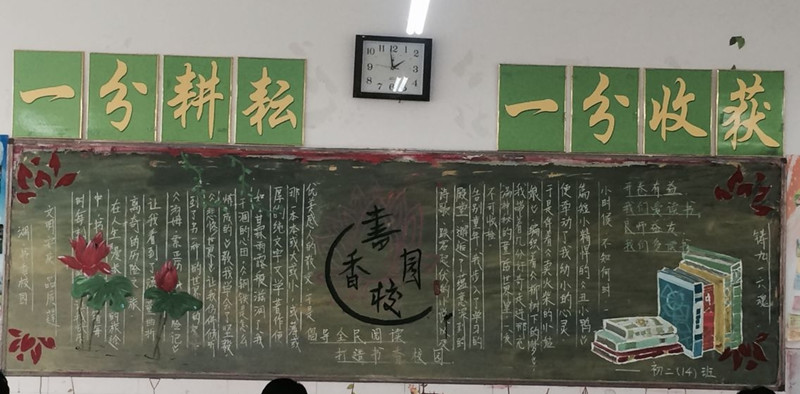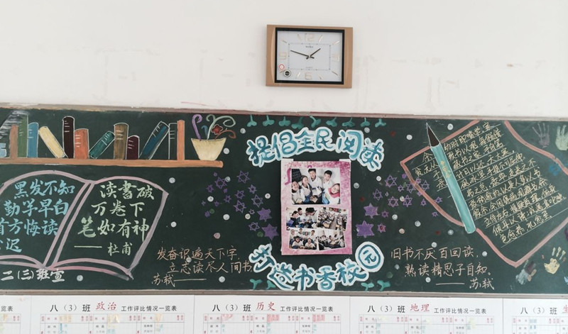 为营造浓郁的校园读书氛围,打造书香校园,培养学生良好的读书习惯,加强校园文化建设,创建和谐校园。近日,我校开展了以“倡导全民阅读,打造书香校园”为主题黑板报评比活动。