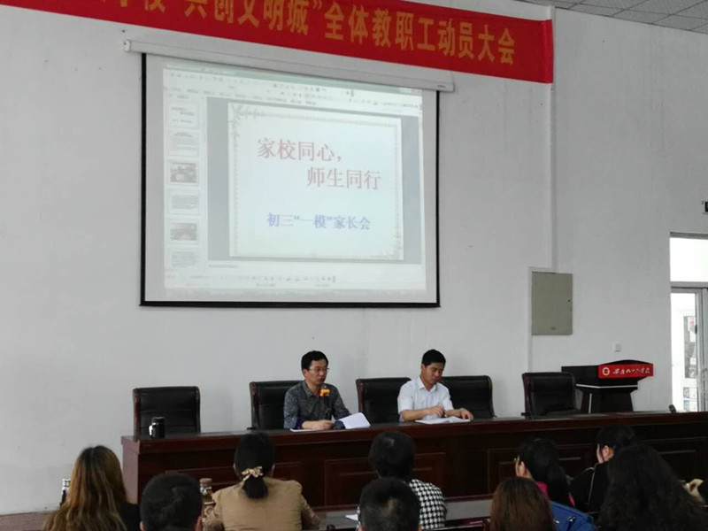 为了加强学校与家长的沟通、交流,广泛听取家长的意见和建议,搭建家校学习交流、研讨的平台,形成教育合力,提高学生在中考时的学业水平,充分展示学校良好的校风校貌,让每一位家长能更进一步了解学校,了解学校的教育理念和教育孩子的方式,真正达到家校同心共同培养孩子的目标。5月14日下午2时,初三年级组召开了以“家校同心,师生同行”为主题的家长会。