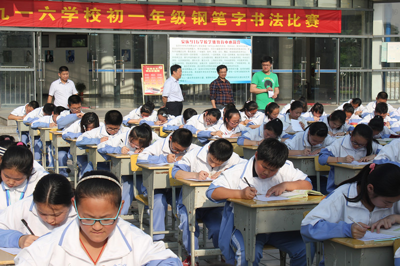 5月31日下午,初一年级在艺术楼前广场举行了钢笔书法比赛。作为初一年级本学期“快乐阅读,快乐书写”活动的重要组成部分,本次比赛得到了初一全体语文老师的大力支持,商议选取语文七年级下册《劝学》作为书写内容。来自各班精选的210名学生一丝不苟的在规定时间内完成了本次比赛。