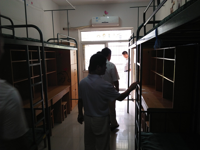 开学伊始,为了保证学校环境卫生整洁,切实消除校园安全隐患,以崭新的面貌迎接新学期的到来,8月30日上午,我校开展了开学卫生安全大检查工作。由校长周诗长、执行校长侯纪明、副校长程启胜及各部门负责人组成的检查组,对学校进行了全面检查,重点对学生公寓、教室和食堂等地进行检查,对发现的问题现场研究整改方案,确保开学平稳、有序。