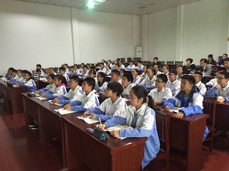 10月13日上午, 由市教研室组织的安庆城区生物“四课”活动在我校隆重举行。市教研室生物学科教研员张海马老师、市区生物学科“四课”活动组长叶曙光老师,安庆二中、九中、安庆十中、石化一中、安庆四中、杨桥中学、广圩中学等多所学校的20多位生物专家、教师来我校参观指导、传经送宝。