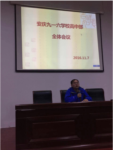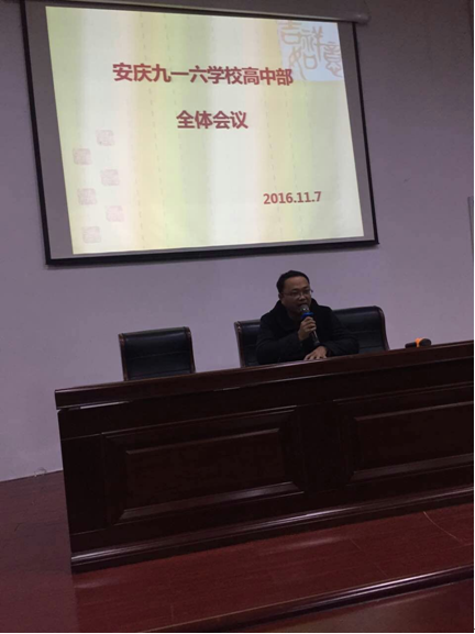 11月7日晚,高中部在二楼阶梯教室召开学部全体教师会议,高中部教学教研主任徐华平主持此次会议。 首先,徐主任通报了十月份考勤情况和九月份月度教学常规考核情况,并布置了青蓝工程师徒结对工作和期中考试考务工作。他指出,希望以常规考核和师徒结对为契机,进一步推进课堂教学改革,努力提高教学效果。 随后,班主任代表乔华兴老师发言,他回顾10年来班主任工作的历程,道出了班主任工作“严”与“爱”的真谛,并和大家分享了一些独特的管理方法,让在座的每位老师受益匪浅。 最后,学部德育主任吴聪对九月份的全员育人工作进行了简要总结,指出目前班主任工作中要特别关注重点时段、重点区域和重点学生的管理和督促,力争使德育工作在细微处、常规中取得较好效果。 通讯员:徐华平 附高中部师徒结对名单: