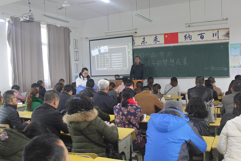 为了加强学校与家长的沟通、交流,广泛听取家长的意见和建议,同时搭建家校学习交流、研讨的平台,形成教育合力,12月3日上午8时,初中部召开了以“让我们一起努力,让孩子的梦想成真 ”为主题的初二年级家长会。