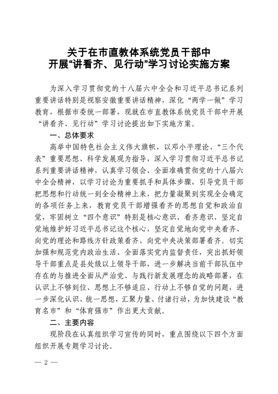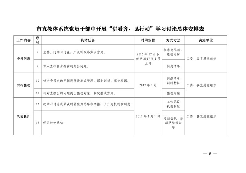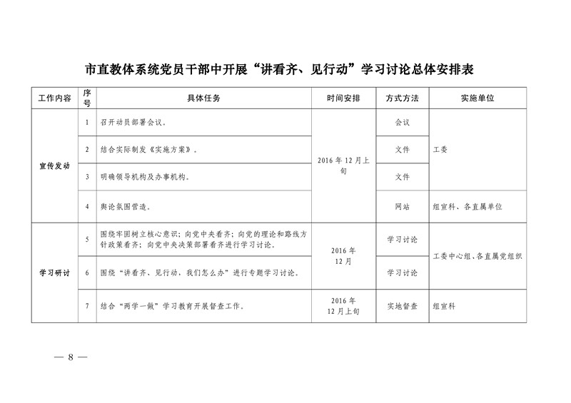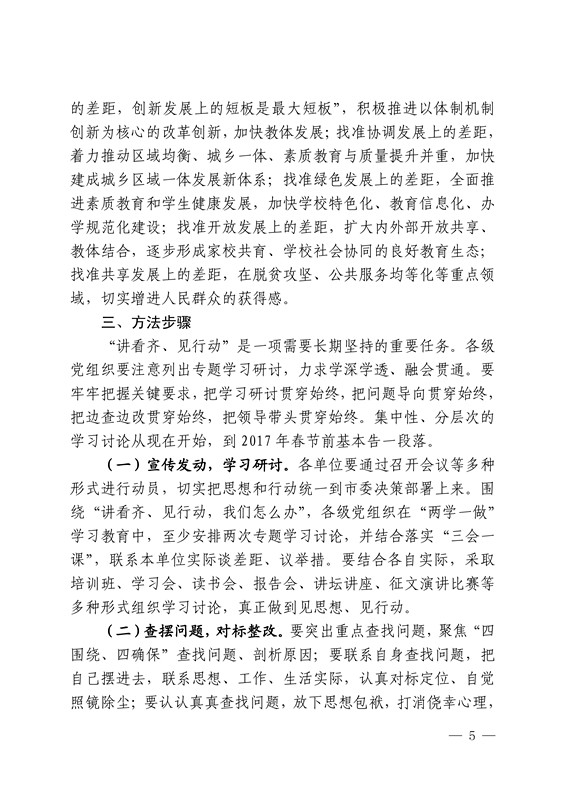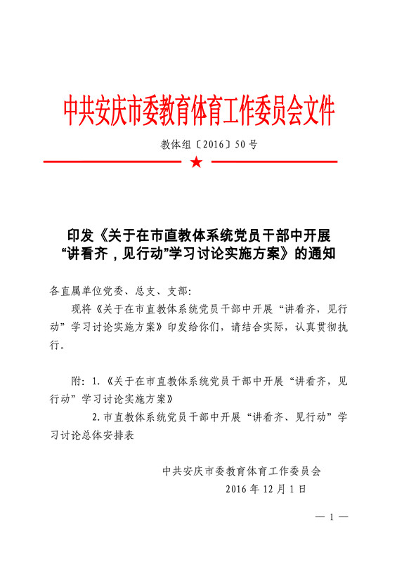 印发《关于在市直教体系统党员干部中开展“讲看齐、见行动”学习讨论实施方案》的通知