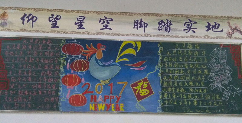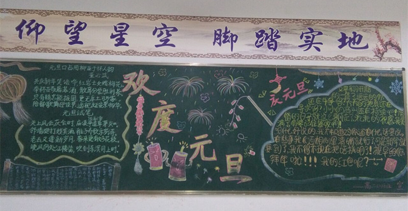 各班在班主任和学生的策划下,各班的黑板报主题鲜明,内容有吸引力,美观大方,色彩鲜明,搭配和谐自然,版面设计新颖独特、有风格,体现个性化和创意。同学们的祝福,新年的愿望,元旦的来历等等,都在这小小的方寸之间绽放光彩,吸引了众多同学和老师的目光,为我校校园文化增添了一道靓丽的风景线。