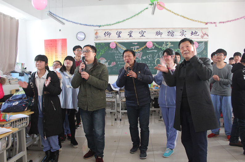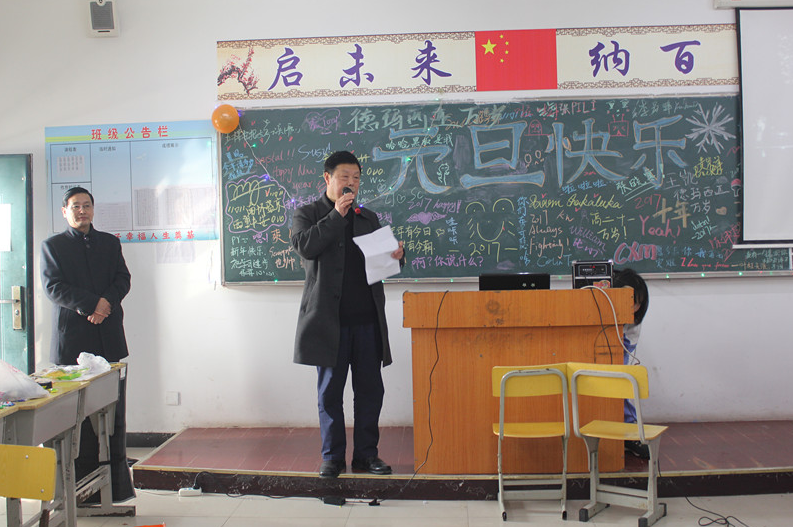 上午8时,各班联欢会准时开始,校长周诗长、董事长助理黄寿钦、执行校长侯纪明、副校长程启胜等校领导带着新年的祝福视察了每个班的活动情况,被欢乐的气氛感染时,周校长还上台为师生们表演了《北国之春》、《再别康桥》、《沁园春·雪》、《滚滚长江东逝水》等节目,赢得了在座师生的喝彩,浓郁的节日气氛弥漫在整个校园里。