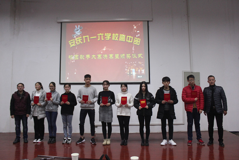 经过2个多小时的激烈角逐,经过评委老师公平公正的评判,最终高一(7)班臧文婧、高二(7)班夏戎、高二(11)班杨帆分别获得本次比赛的冠军、亚军、季军,高二(8)班 吴田心等10名选手获得本次比赛的“十佳歌手”,高一(2)班 吴卓等4名选手获得“最具潜力奖”,高一(1)班汪传宝等3名选手获得“最具人气奖”,高二(8)班沈浩等3名选手获得“最具活力奖”。高中部吴主任、徐主任、张主任、江主任和钱主任现场给获奖选手进行了颁奖。