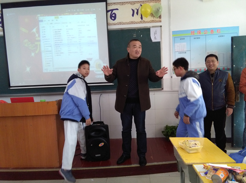初中部周正勤主任带领各处室领导深入各班级向同学们致以节日的问候并作了重要讲话,对本次文艺联欢会给予了高度评价。