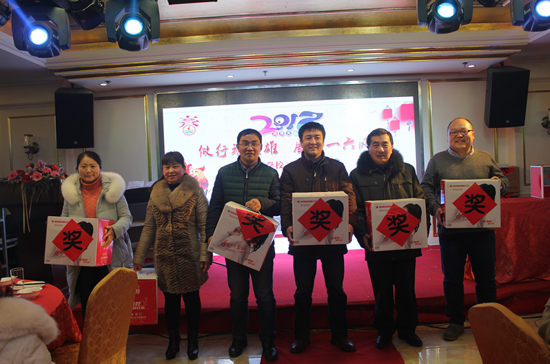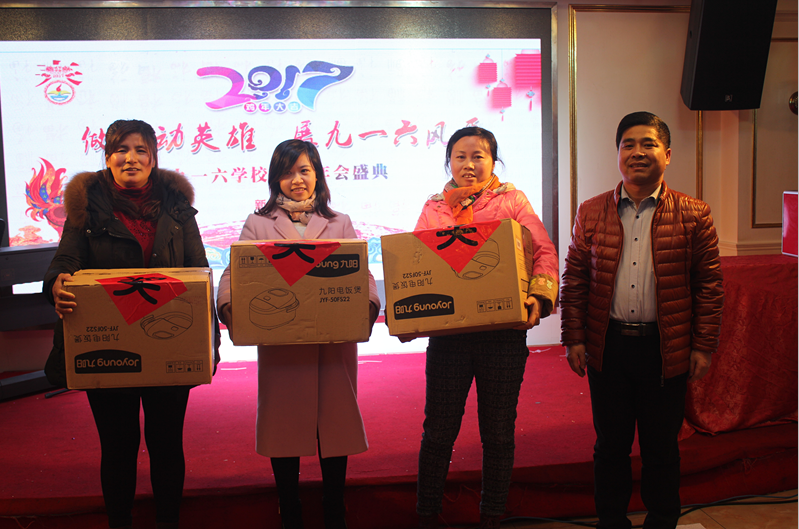 随后,各部门员工带来了丰富多彩的表演,唱歌、诗朗诵、脱口秀等节目精彩纷呈,赢得了满堂喝彩,节目中间还穿插了激动人心的抽奖环节,四等奖、三等奖、二等奖、一等奖、特等奖的抽取,不断掀起年会的高潮。学校领导与教职员工的亲情互动、激动人心的抽奖活动,让歌声、掌声、欢呼声一直在会场上荡漾。整场联欢会高潮迭起,体现了九一六大家庭的团结与和谐。