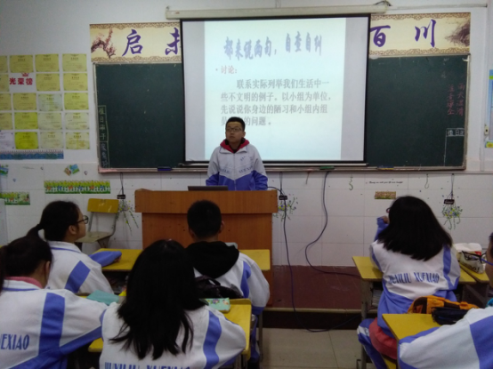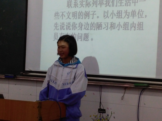 3月12日,七年级召开了一次以“文明习惯”为主题的班会。在这次班会课上,同学围绕学习、生活、人际交往等方面的文明习惯进行了积极讨论和交流。同学们对身边的陋习义愤填膺,对文明行为深表赞许。