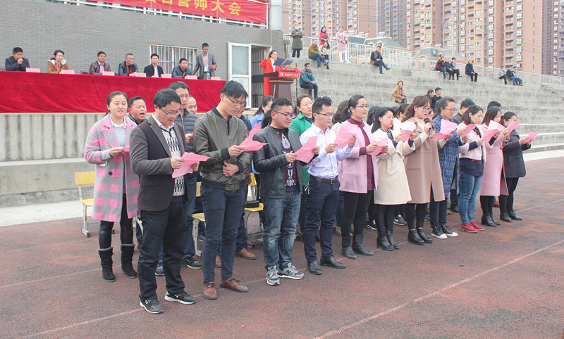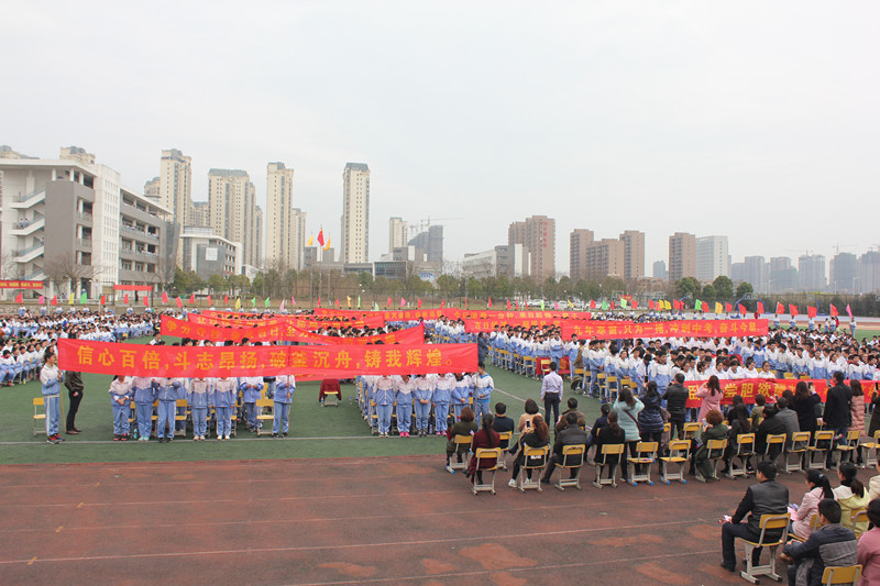 3月10日下午,我校初中部在运动场隆重举行了中考百日誓师大会。学校领导、初中部全体师生以及400多位学生家长出席大会。