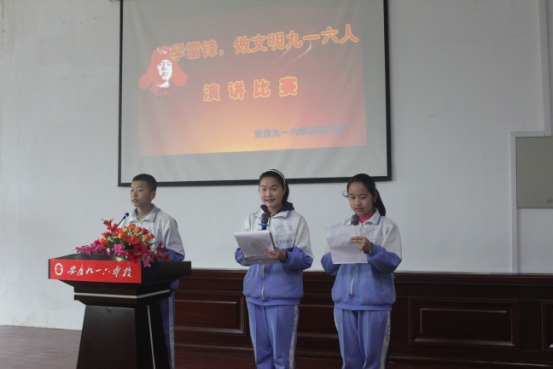 为了大力弘扬雷锋精神,我校初中部于4月6日下午组织初一、初二师生举行了一场别开生面的“学雷锋,做文明九一六人”为主题的演讲比赛。