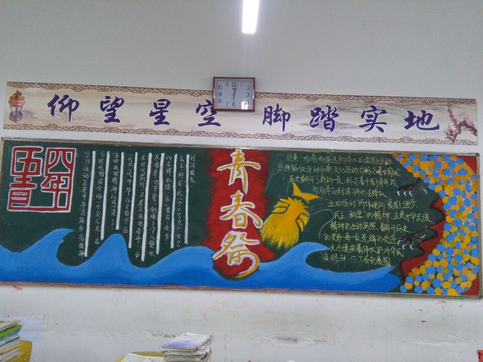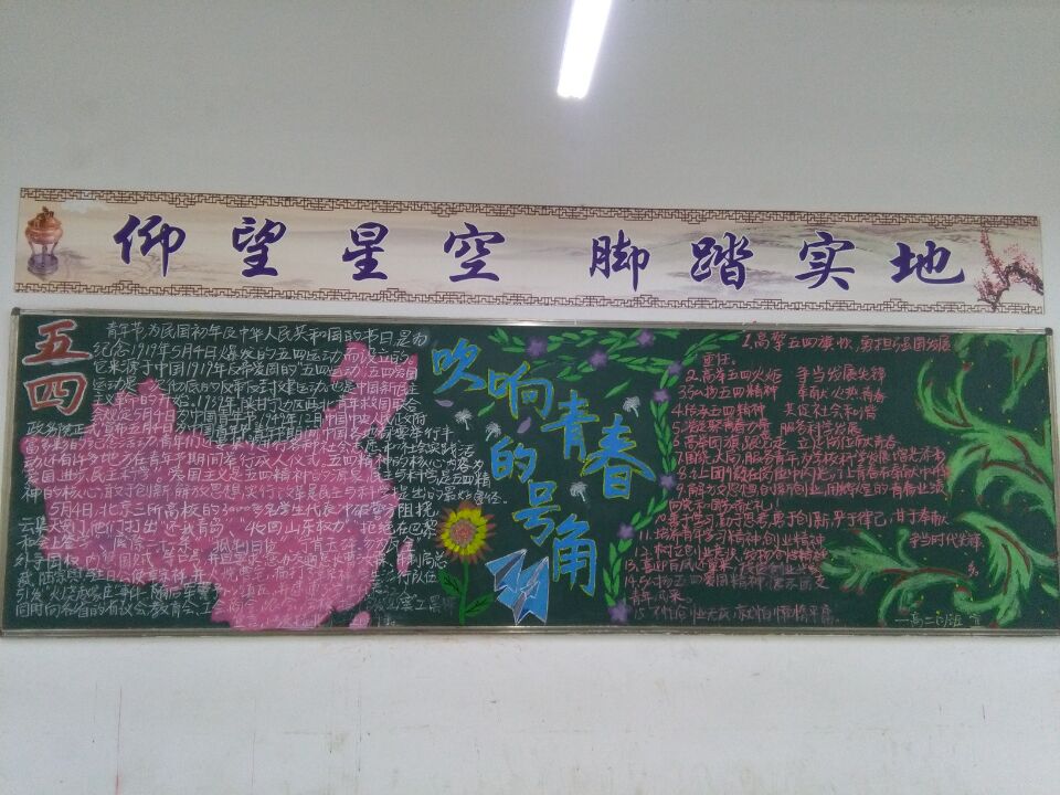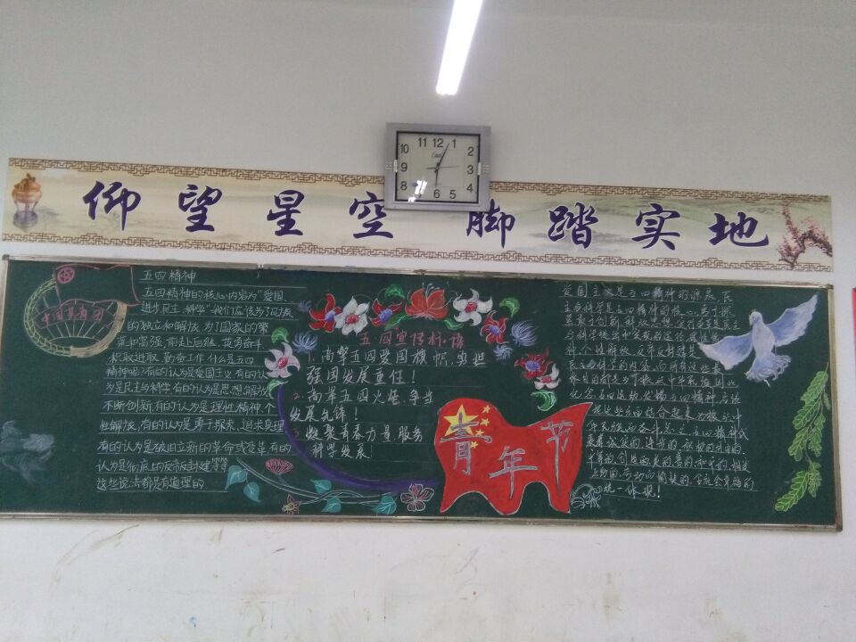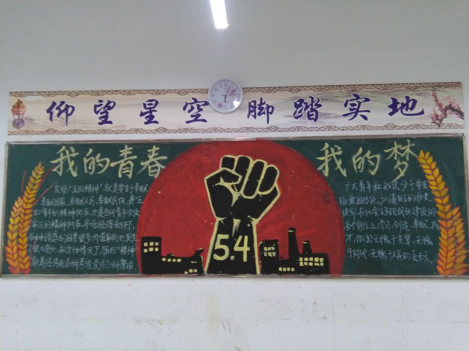 青年学生是共青团的主体,是党的主力军和后备力量。在“五一”国际劳动节和“五四”青年节到来之际,为给广大青年学生营造一个健康团结、积极奋进的节日氛围,我校高中部开展“迎五一·庆五四”主题黑板报评比活动。