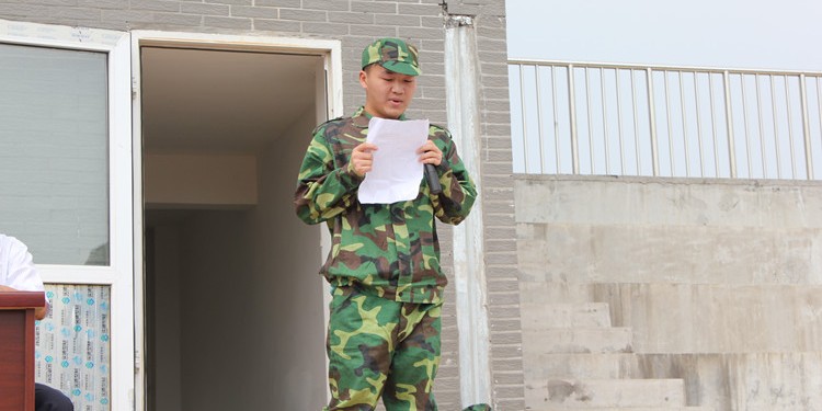 最后,安庆砂桥预备役部队团长彭杰鸿作了讲话,他要求全体师生及教官思想上高度重视军训,严格要求自己,发扬“流血流汗不流泪,掉皮掉肉不掉队”的精神,保质保量的完成此次军训任务。