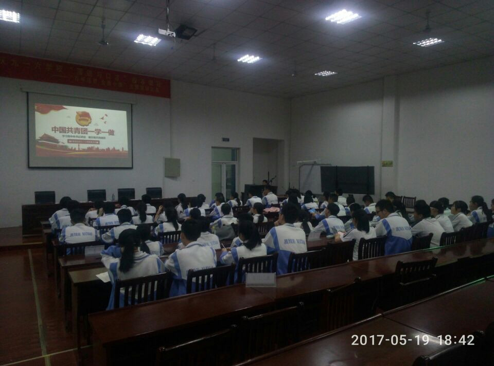 为贯彻共青团中央关于“学习总书记讲话,做合格共青团员”教育实践的号召,增强团员的先进性和光荣感,我校团委积极开展“一学一做”主题教育实践活动,号召团员青年履行团员义务,争做时代先锋。5月19日,我校团委开展“一学一做”教育实践主题团课活动,高一年级、高二年级各班团支部书记和新入团的团员参加此次会议,会议由王俊老师主持。