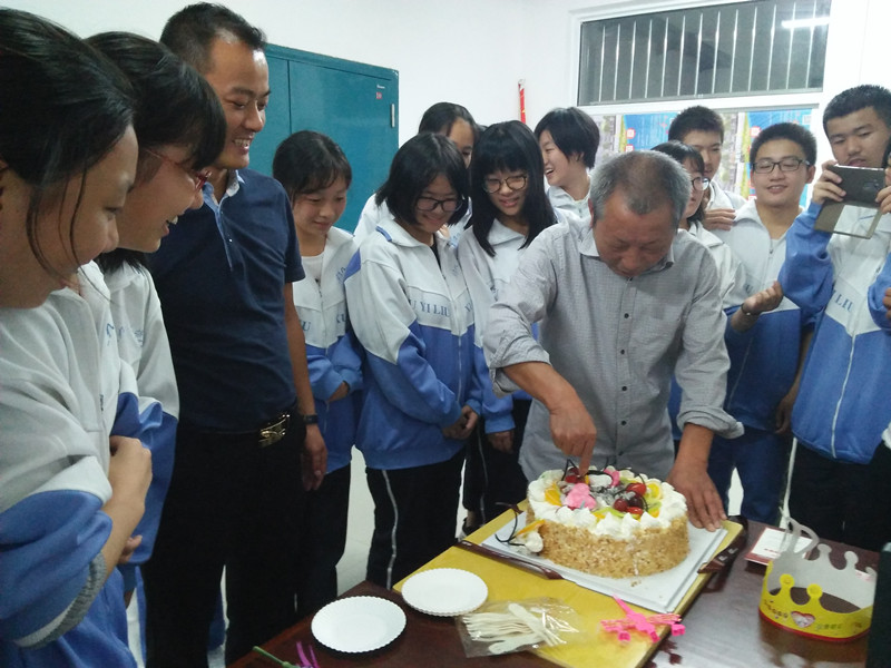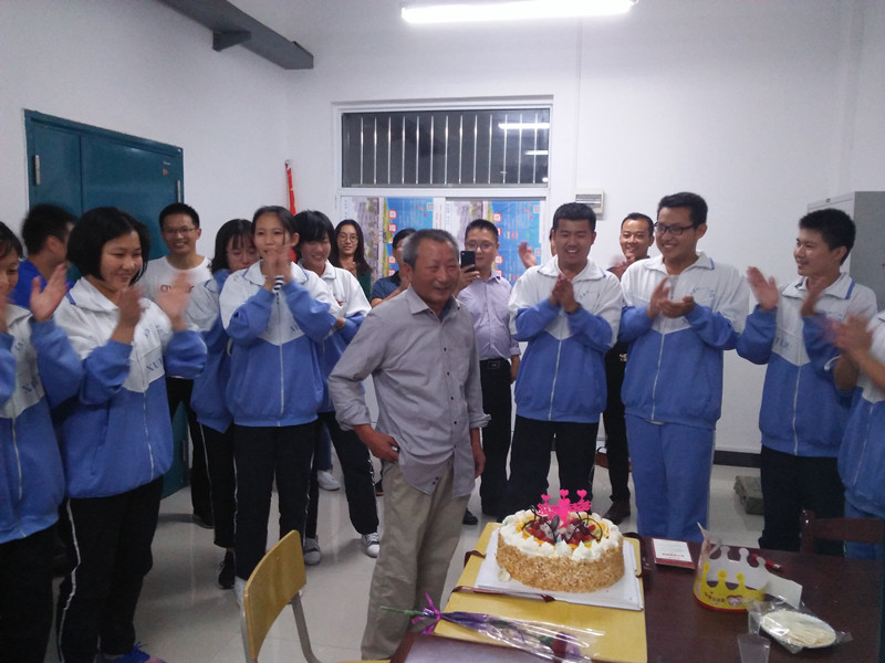 原来今天是高中部何世杰老师的生日,何老师从教三十余年,在同事眼里,他是老前辈,老长者,在他的学生眼里,他是良师益友。很多同事和同学闻讯,都自发的前来为何老师送上祝福。接到真挚祝福后的何老师,感动的说到:“这将是我人生中最难忘的生日之一,感谢我亲爱的家人们”。