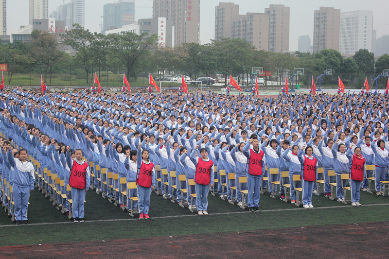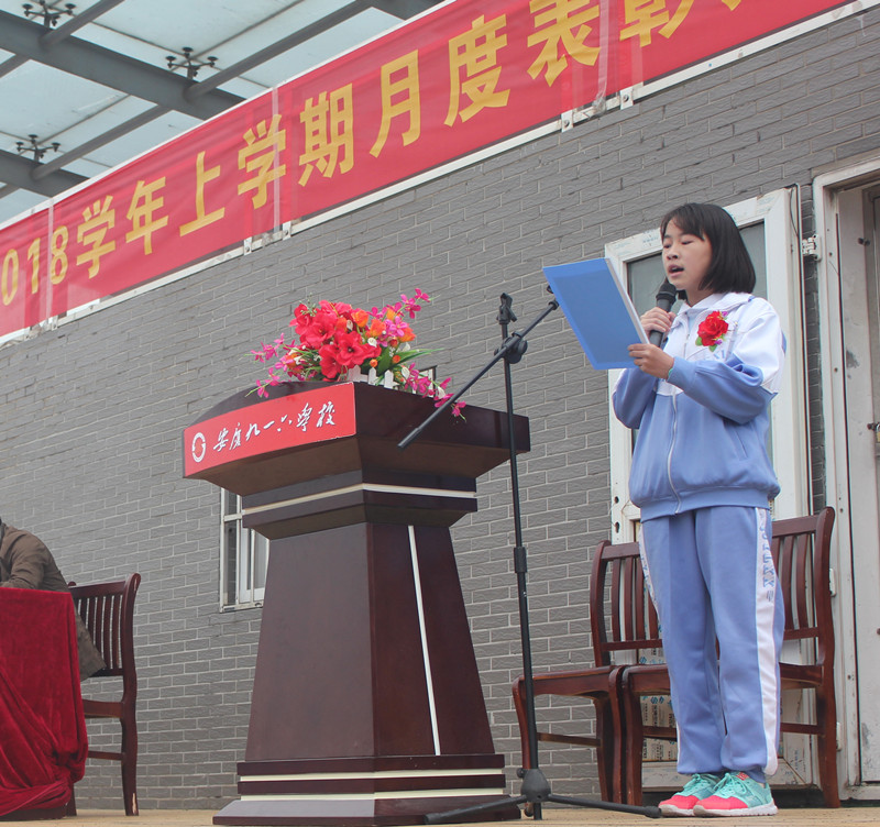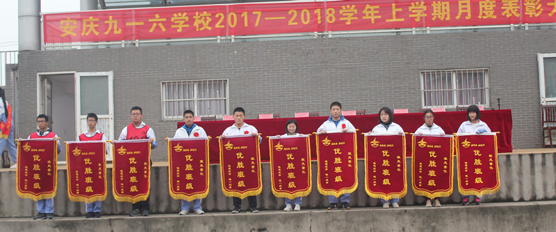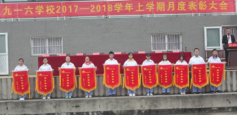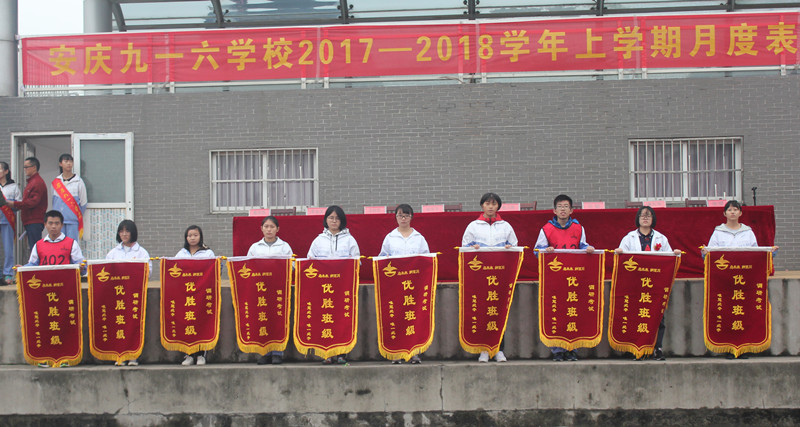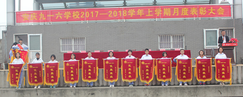 凝望着冉冉升起的五星红旗,表彰大会在庄严的国歌声中拉开了序幕。大会回顾了月考中同学们取得的可喜成绩。执行校长助理兼高中部主任吴聪公布了“调研考试优胜班” 、 “班风量化优胜班”、 “跑操汇演优胜班”、“卫生量化优胜班级”等获奖名单,并宣读了月考中涌现出来的勤奋好学、成绩优异的学生和各班进步较快的同学的名单。与会领导为成绩优异、各方面表现突出的学生和班级颁发了奖状和锦旗。