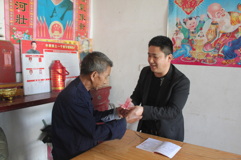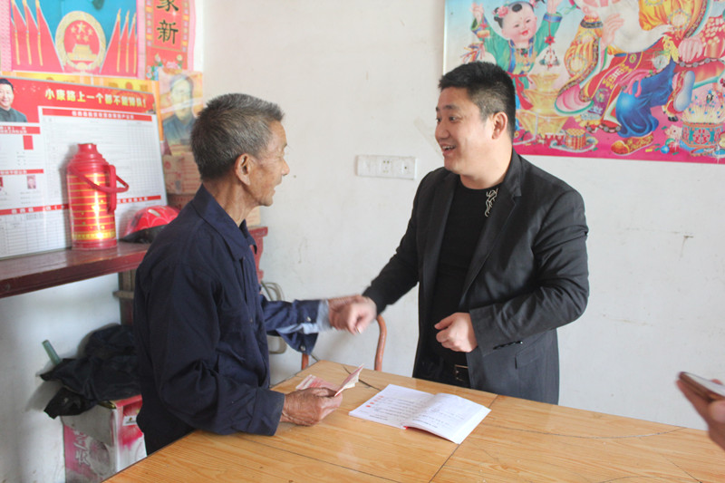 在贫困户舒本来家中,不厌其烦的宣传惠民政策,体贴入微的了解生活近况,热情的送上慰问金和生活用品。慰问时,点点滴滴,无不体现董事长对舒本来同志的关心和关爱。