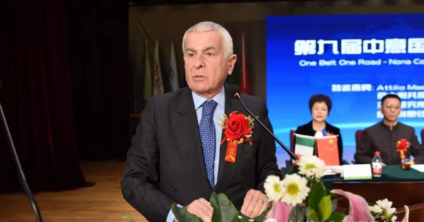 下图:意大利共和国外交部亚洲司副司长(意大利原驻华大使)Attilio Massimo Iannucci致辞