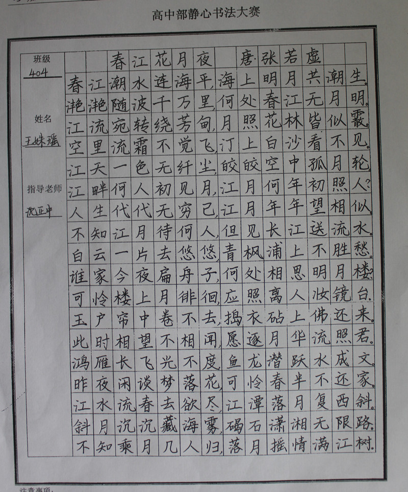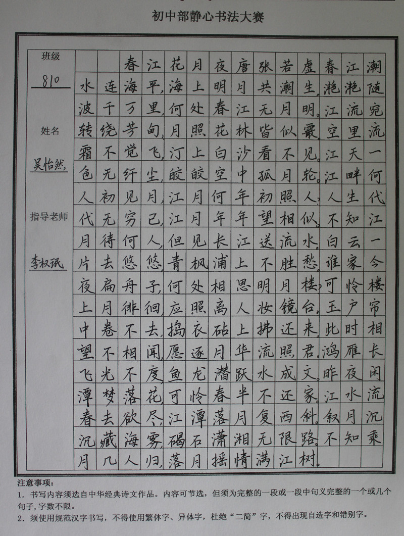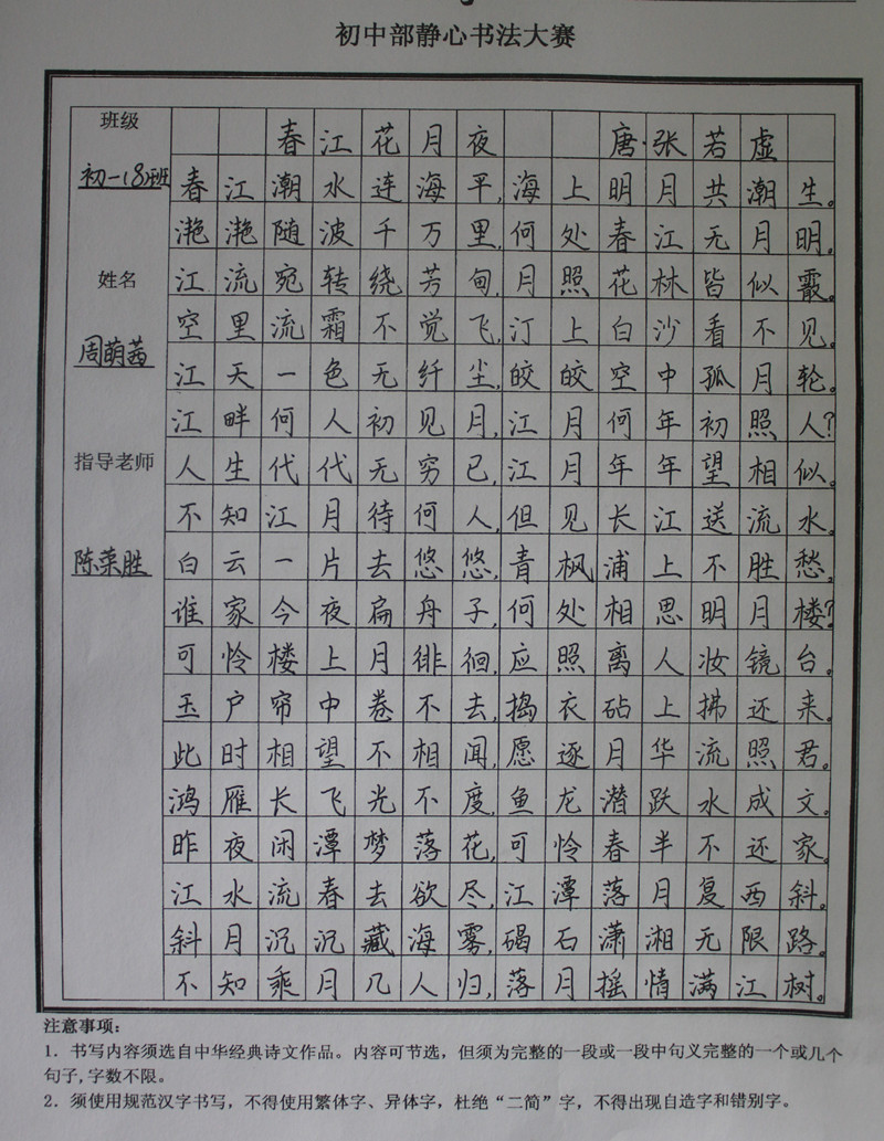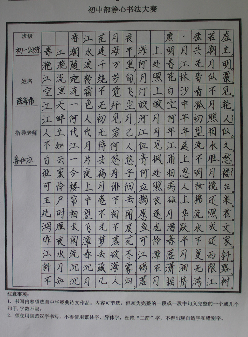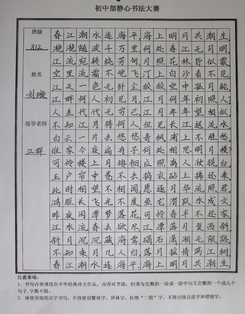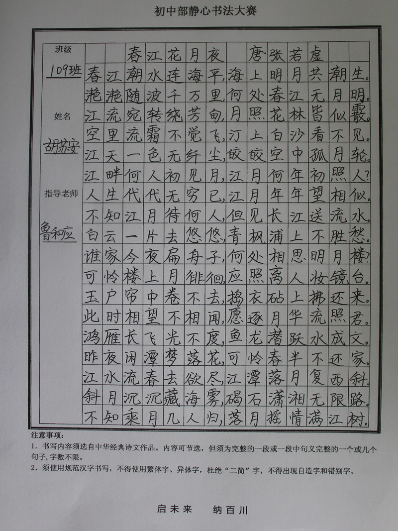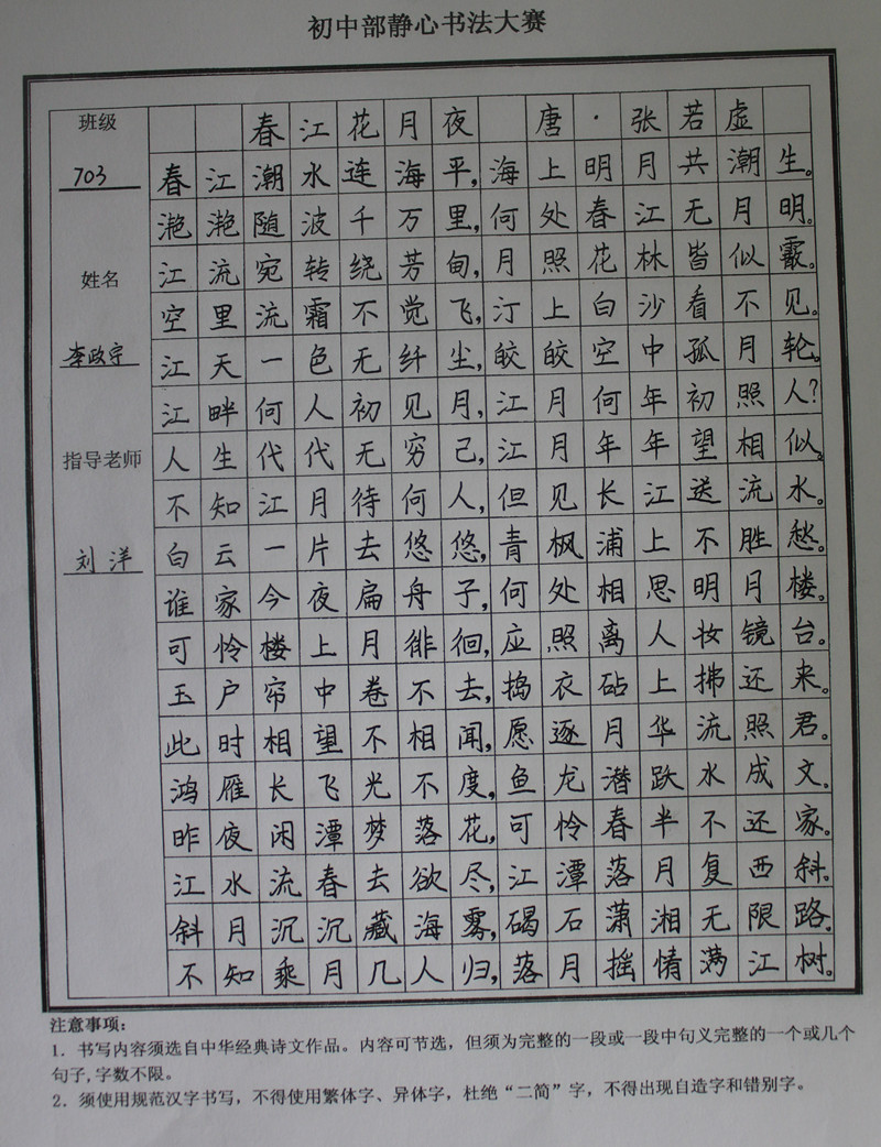 学生静心书法作品展示(部分)
