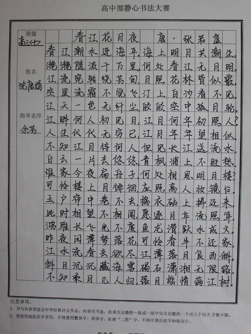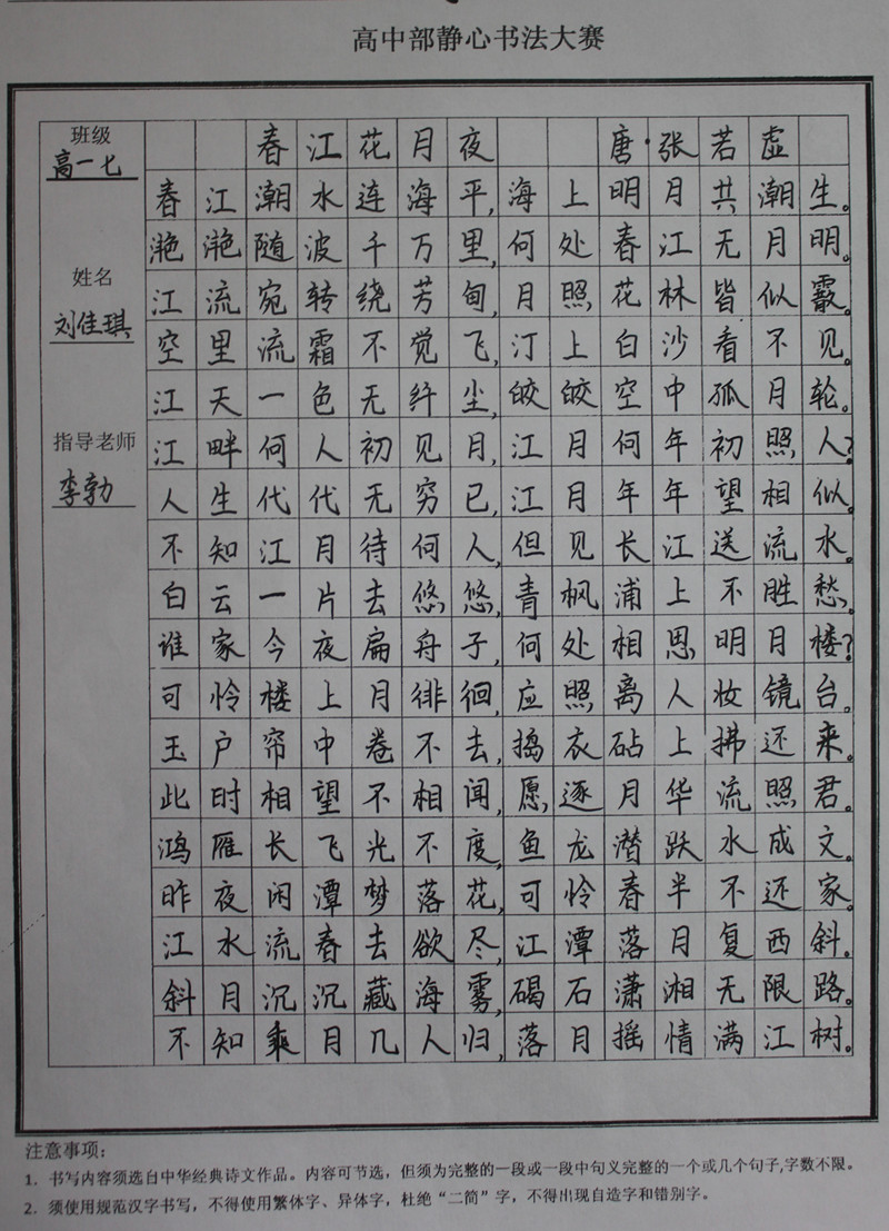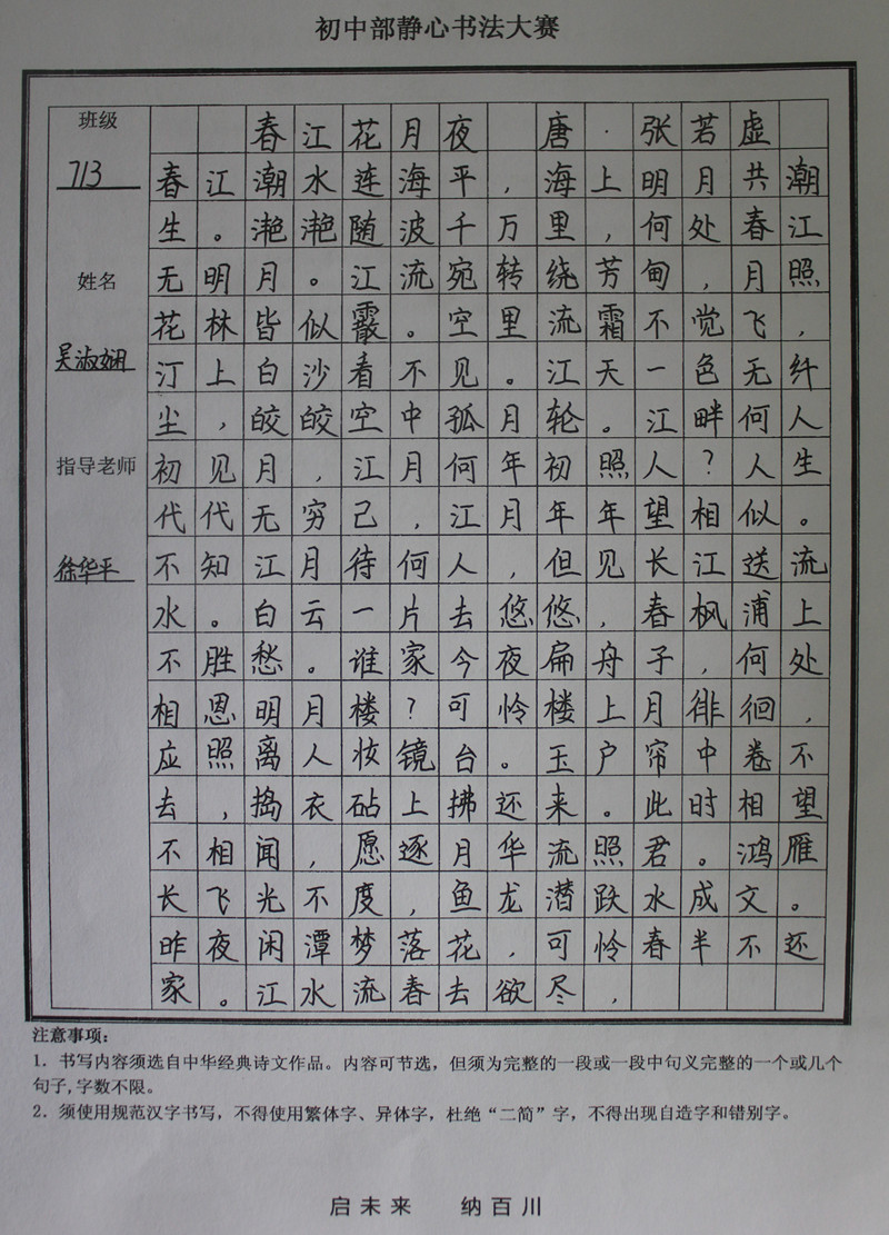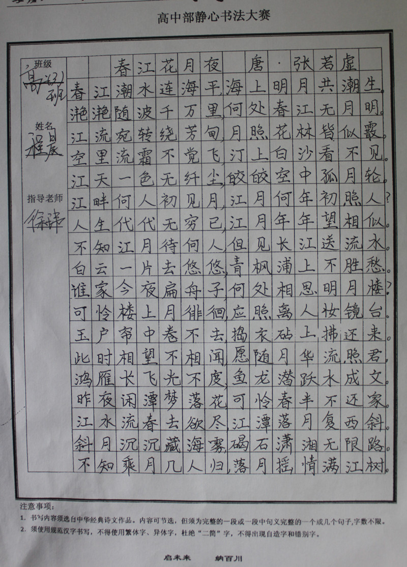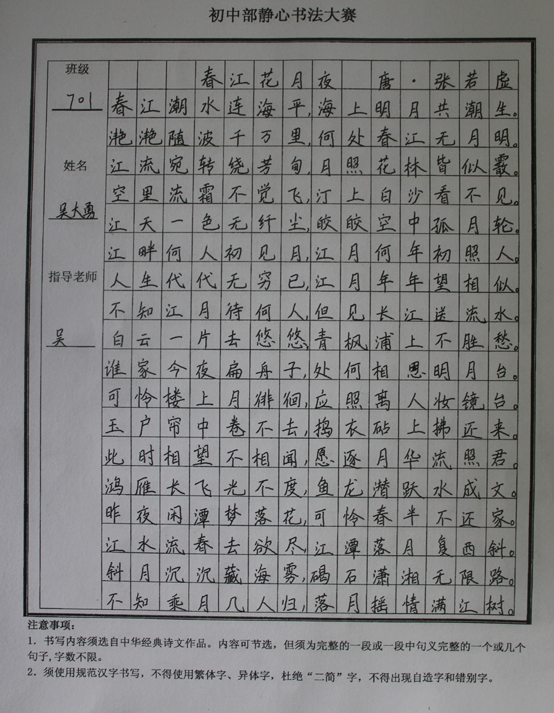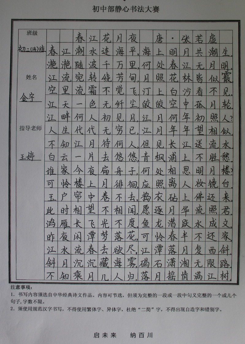 学生静心书法作品展示(部分)