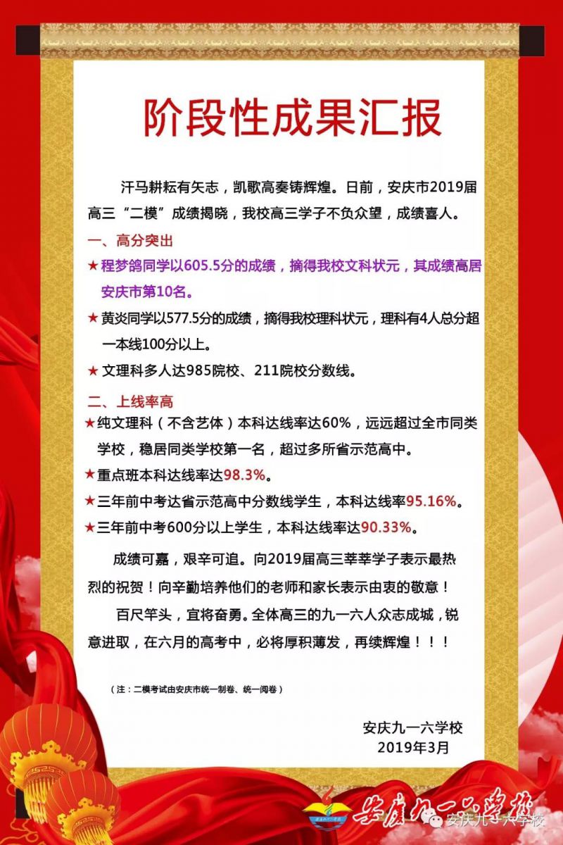 2019年安庆市高三“二模”成绩喜人