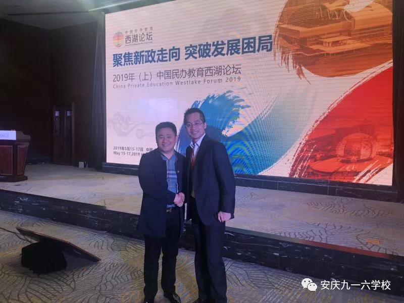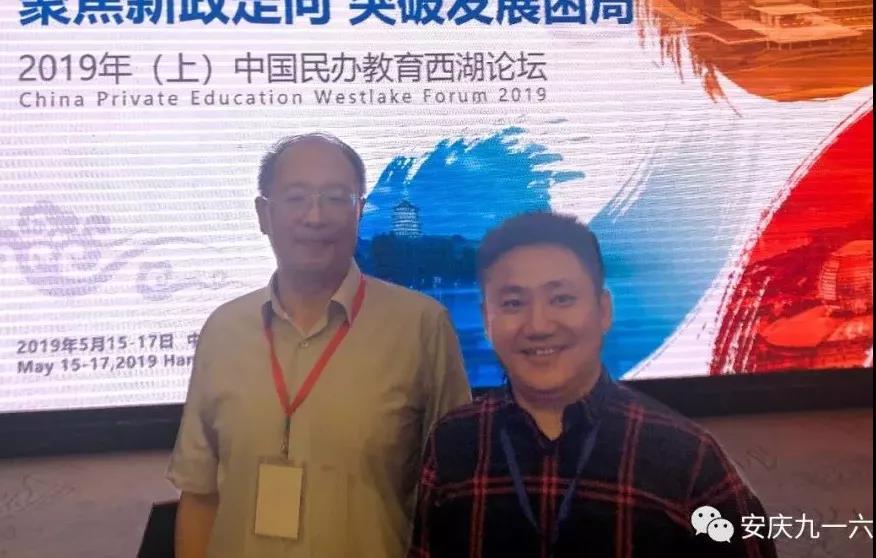 上图为程董事长在杭州参加“中国民办教育西湖论坛”时与教育部原政策研究与法制建设司司长、中国教育发展战略学会会长孙霄兵教授合影留念。