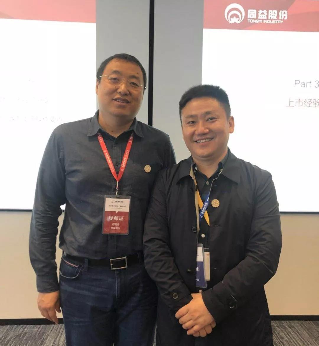 上图为程董事长与上市公司同益股份董事长邵羽南合影