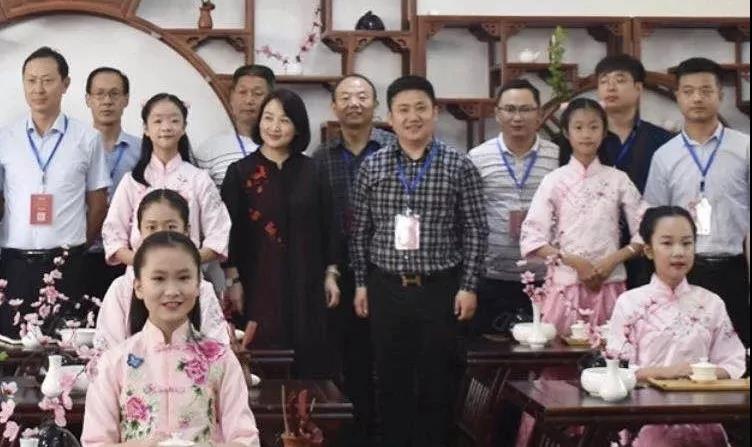 上图为程董事长与华粤英德实验学校表演茶艺的同学们在一起。