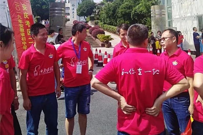 14日早上,我校初三班主任和学科老师们早早的就奔赴各个考点,为初三学子们做好保障工作,并为他们鼓劲加油。老师们身着醒目的红色助威服,笑容满面地迎接每一位考生的到来。
