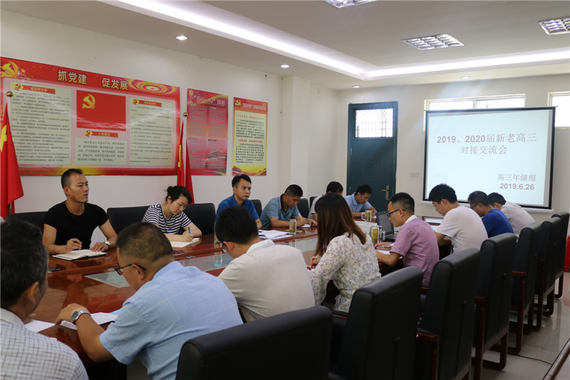 6月26日下午,我校召开了2019、2020届高三对接交流会,学校教学校长张永国等校领导及新、老高三教师参加此次会议,会议由高中教学主任张义华主持。会议围绕“2019届高考经验交流及2020届新高三备考策略”进行了充分、全面的交流。