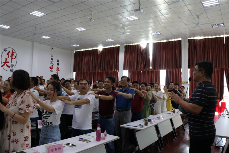 齐校长针对教师心态及教学方法方面与我校全体教师分享。8月14日上午,齐校长围绕“教师阳光心态,做幸福教师”做专题讲座:他提出要作为教师,要心念阳光,学会微笑,培养自身良好个性;要以身立教,主动承担老师责任;坚持付出、服从与执行;讲求团队合作、树立终身学习观念。