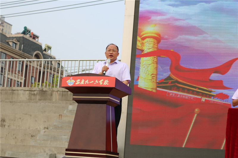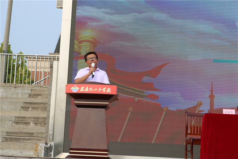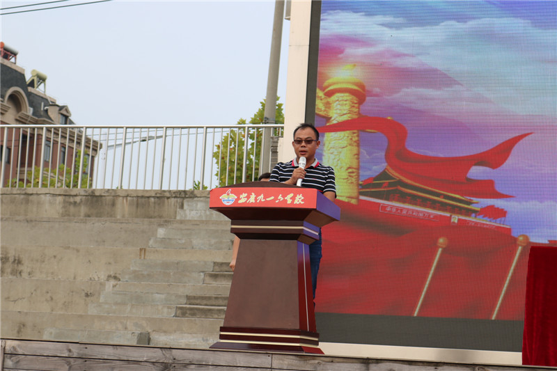 德育处副主任李永国为全体师生做军训动员讲话,他强调了军训目的,提出了具体要求和注意事项。他希望全体新生能够把握好为期一周的军训机会,通过军训这初中阶段的第一课,增强体质,磨练意志,加强自身纪律性和团体意识,同时也通过感受军训生活,培养自己坚强的性格,让自已成为一名优秀的九一六学子。