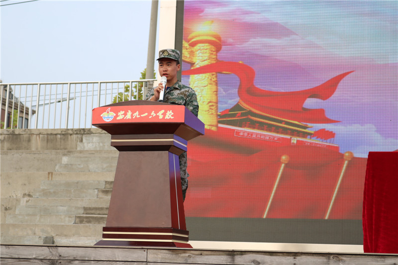 升旗仪式后,首先由学生代表龙浩发言,他代表全体初一新生表达了对老师和教官的深深感谢,表示同学们将服从命令,听从指挥,磨炼意志,顽强训练,提升自己的身体和心理素质,努力成为一名优秀的中学生。