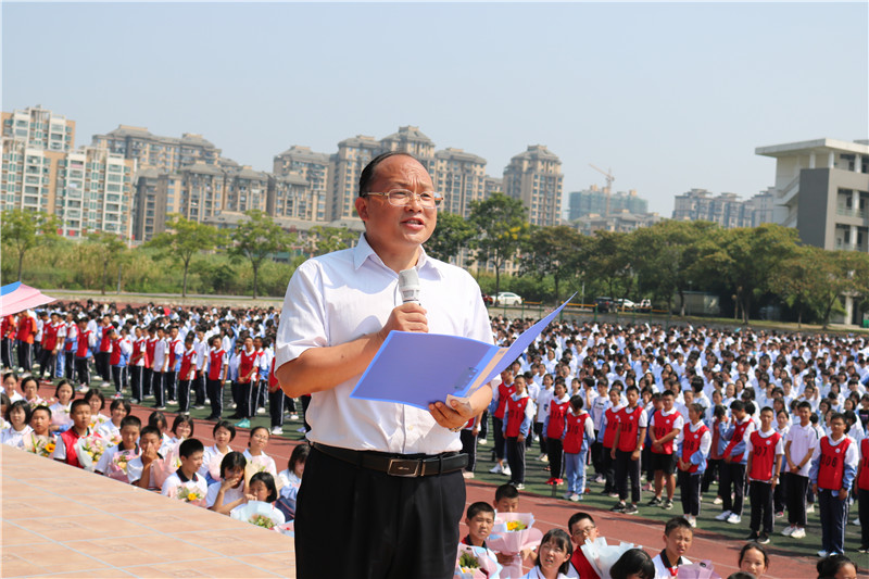 尊师典礼上,何校长向老师们深情嘱托:“从此刻起,我将九一六学校的天之骄子交给各位了,小马学步怨路窄,他们尚年轻,他们还稚嫩,他们须呵护,请你们为了他们的成长多付出;雄鹰展翅恨天低,他们有理想,他们能进步,他们敢坚强,请你们为了他们的成长多引导。在你们的付出和引导下,让他们成为懂生活、会感恩、勇攀登的人。拜托了!拜托了!拜托了!”