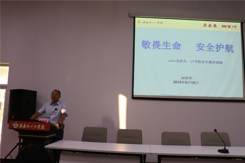 为贯彻市教体局安全工作会议的精神,进一步落实校园安全管理责任,确保学校安全稳定,9月16日下午,我校举行全体教职工大会,校长何仲华以“敬畏生命,安全护航”为主题,为全体教职工开展安全教育讲座。