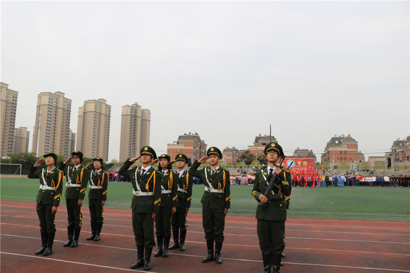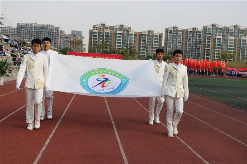 旗手们用挺拔的身躯护卫着国旗、校旗和会徽,铿锵有力的步伐踏出青春的活力。整齐划一的动作,高昂的激情。一下子点燃了本届运动会的热情,全场观众热烈欢呼,鼓掌喝彩。