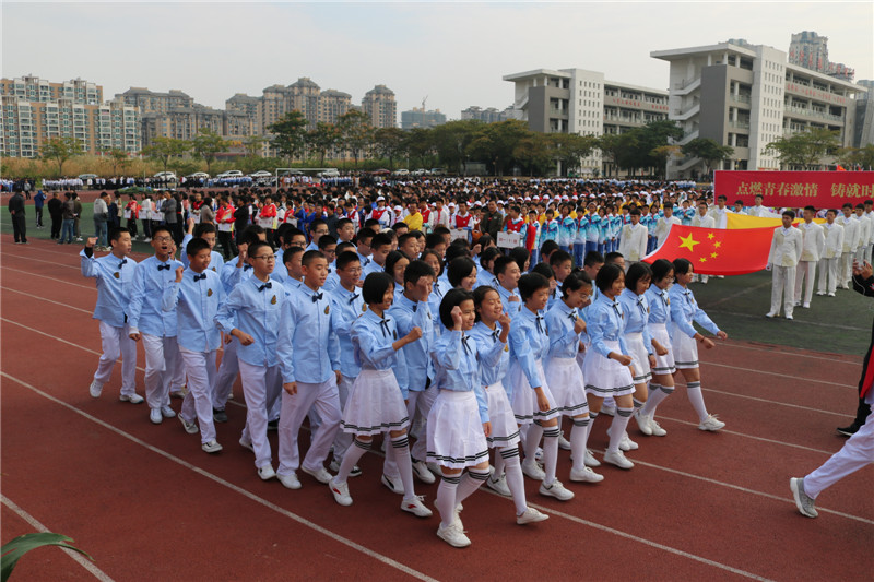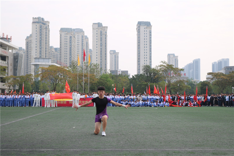 副校长林伟民为本次开幕式致词。林校长指出,一流的学校需要优质的体育,我校积极推进“做精致的教育”,强化“唯冠必夺、唯一必争”的竞争意识,打造激情校园,创建激情文化,注重学生的身体和心理的健康发展。同时,他勉励每一位九一六学子都要加强锻炼,做到德、智、体、美全面发展。他希望全体运动员奋勇拼搏、敢于争先,用无限活力和青春风采展示自强不息、勇攀高峰的九一六人独有的精神风貌。最后,林校长要求本次运动会的全体裁判员和工作人员要公平公正、认真负责、忠于职守、热情服务,共同把本次运动会办成文明、热烈、精彩的盛会。