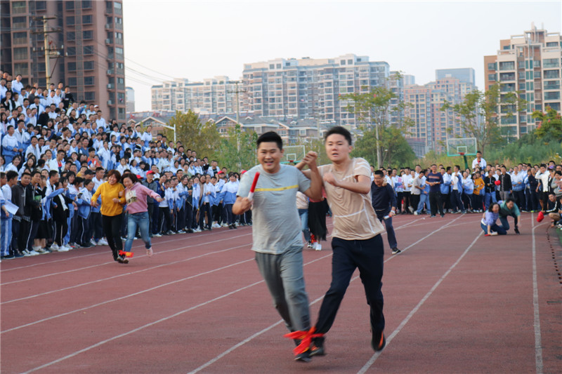 跑道做卷勤奋笔,接力当锄同耕耘!本次比赛设置了教工比赛项目:两人三足、拔河比赛、4乘100米接力赛。运动会上,教职工们你我同行,齐心合力,在比赛中感受快乐,在快乐中释放自我。