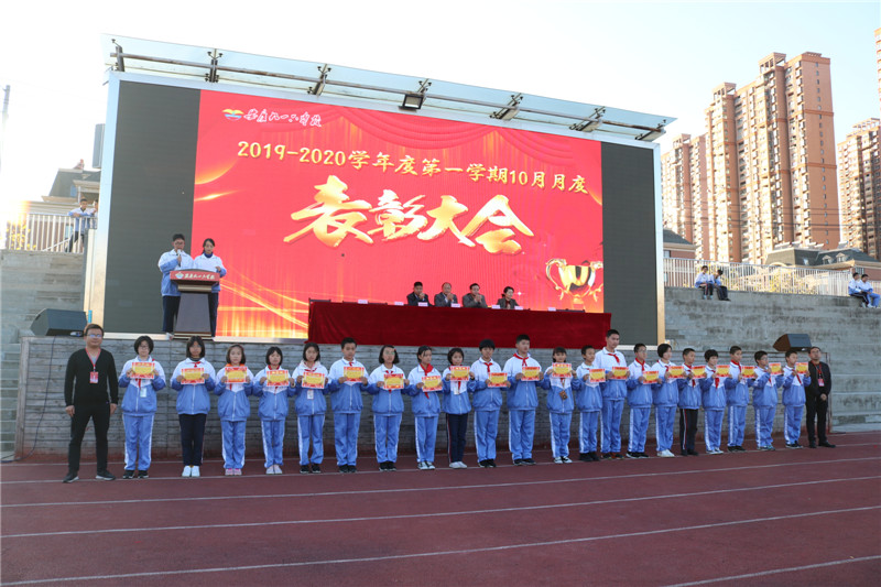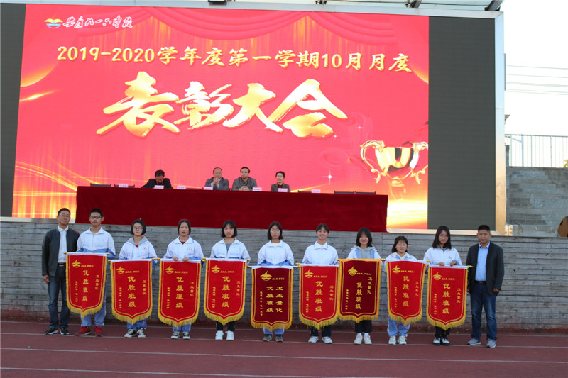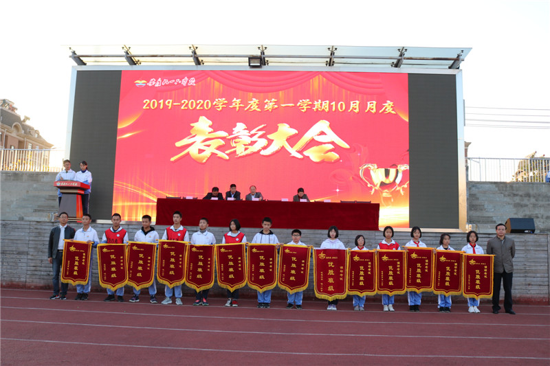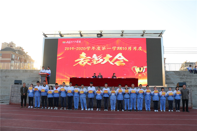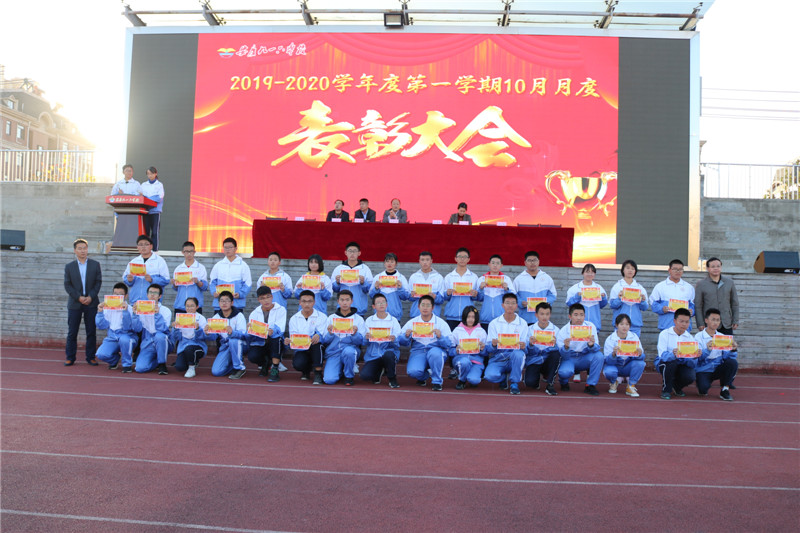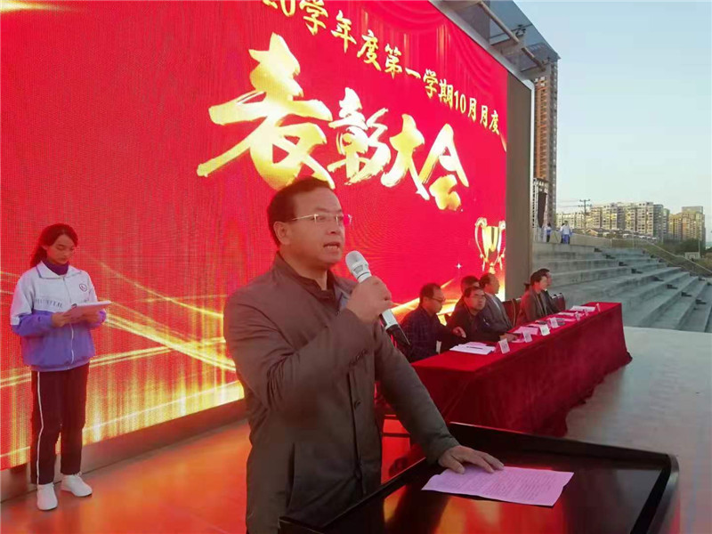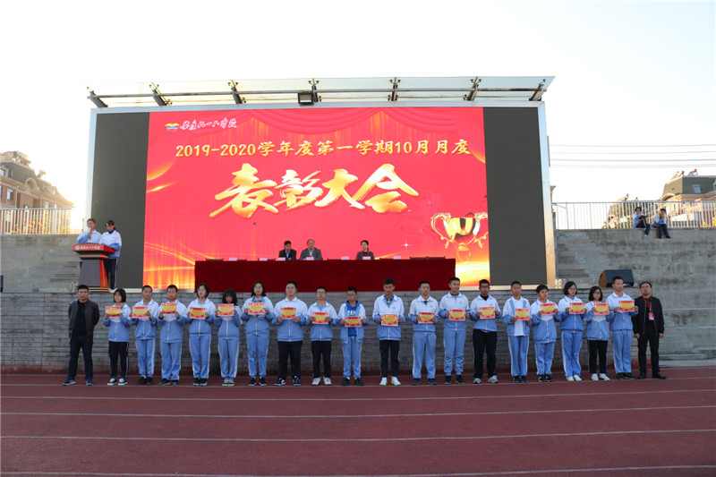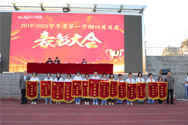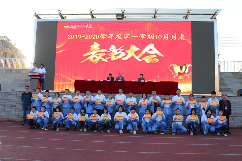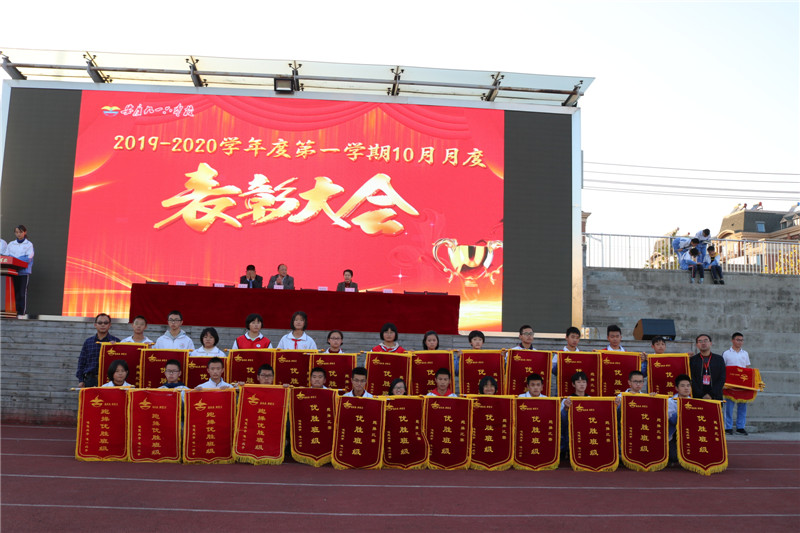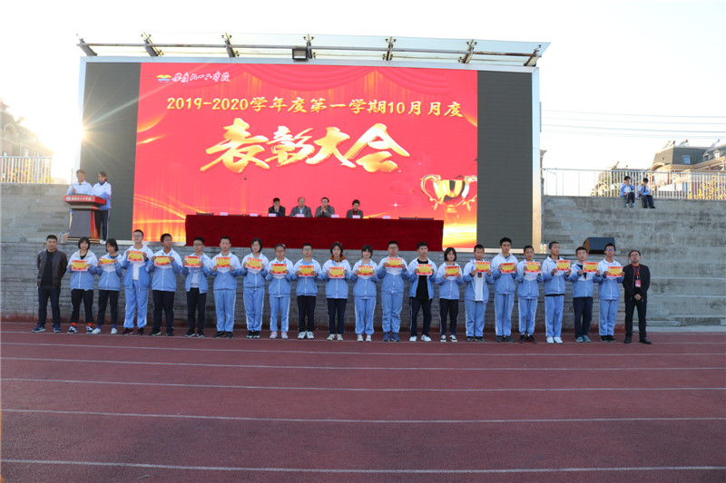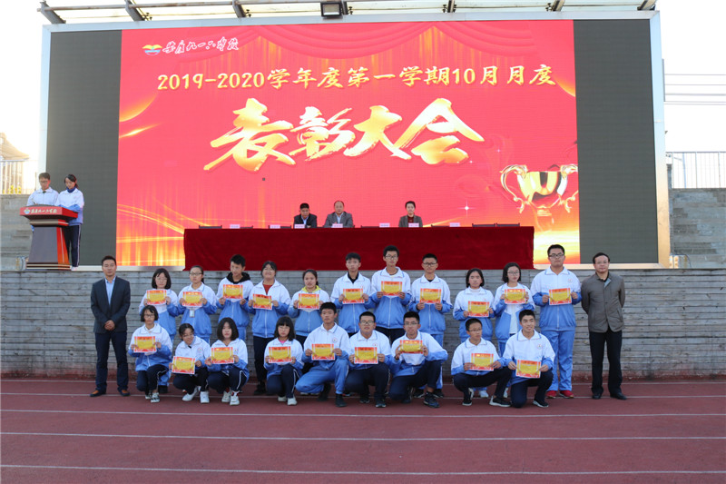 为了表彰先进,树立榜样,激励全体学生更加奋发向上。11月14日下午,我校全体师生齐聚操场,隆重召开月度表彰大会。学校校长何仲华等校领导出席会议。