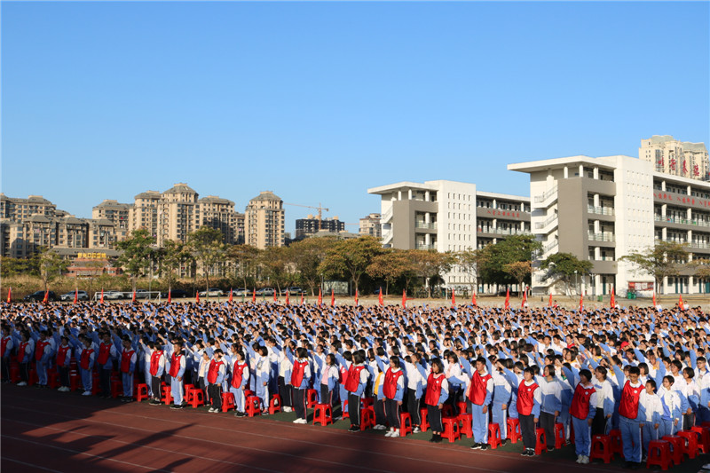 同学们以饱满的热情,认真的态度,震耳的声音坚定宣誓,展示了九一六学子凝心聚力谱华章,意气风发向未来的豪情和决心。