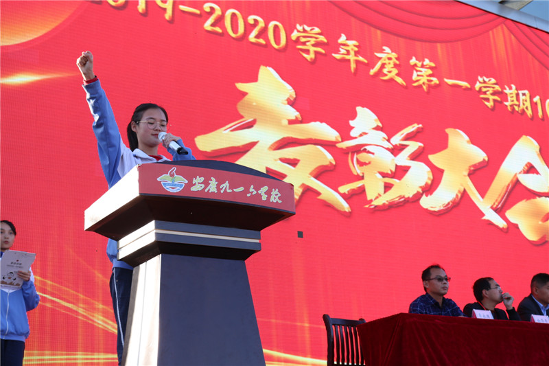 徐培琦同学的发言表达出内心最真挚的声音:脚踏实地,争分夺秒,让青春无悔;志存高远,你追我赶,为九一六争光!