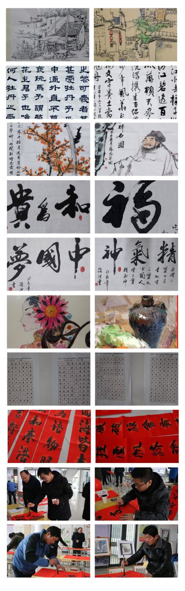 在活动现场,我们看到一幅幅生动传神,色彩明丽,极富感染力的作品,有飘逸灵秀的山水墨迹,有遒劲挺拔的飞龙走笔,有清新雅致的红绿色韵,有浓重深刻的斑斓色彩,无不展现了全校师生传承传统文化、提高艺术修养的丰硕成果,充分表达了全校师生喜迎元旦,憧憬美好未来的高涨情绪。