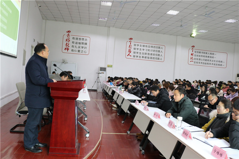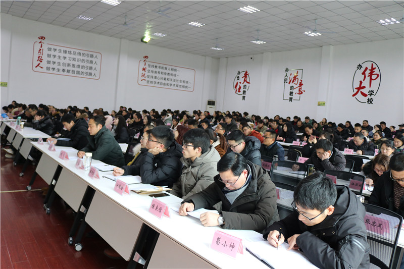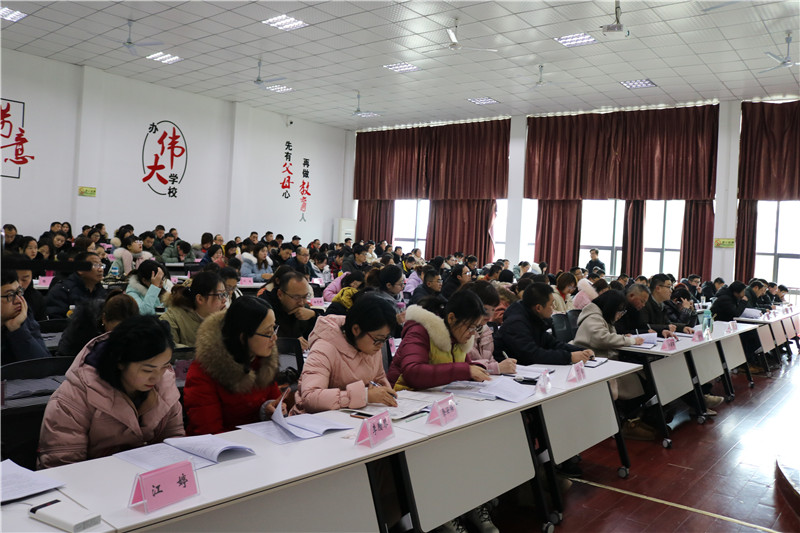 为总结过去,展望未来,1月17日上午,我校全体教职员工齐聚一堂,在二楼阶梯教室召开2019—2020学年第一学期期末工作总结会。