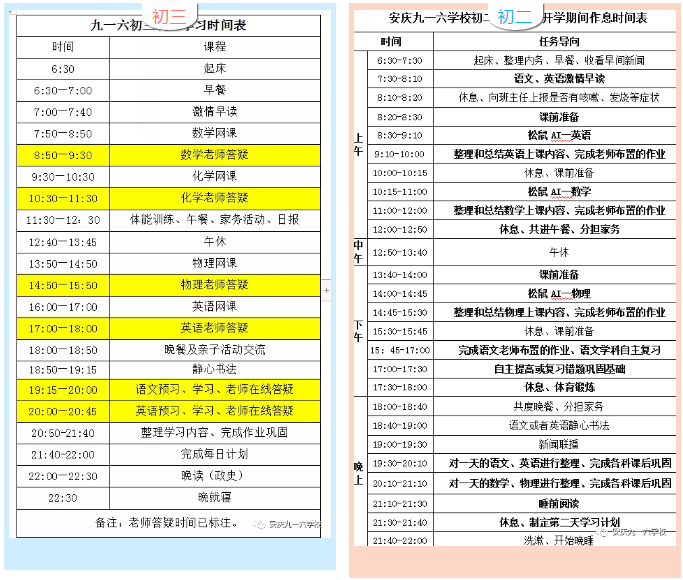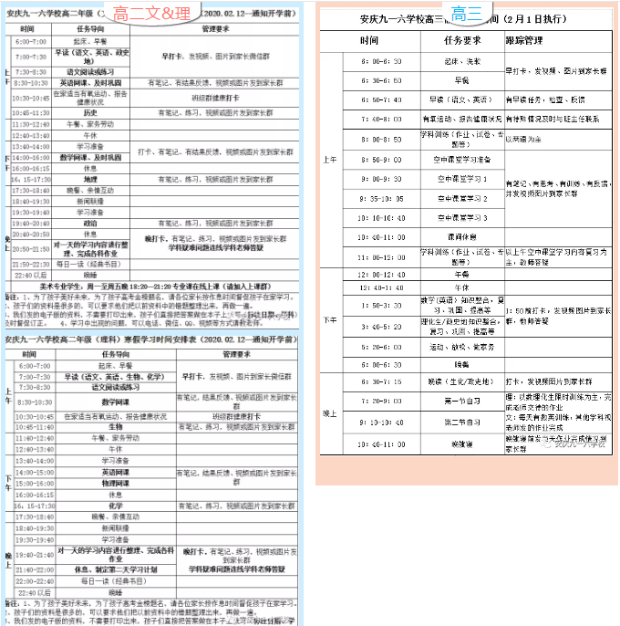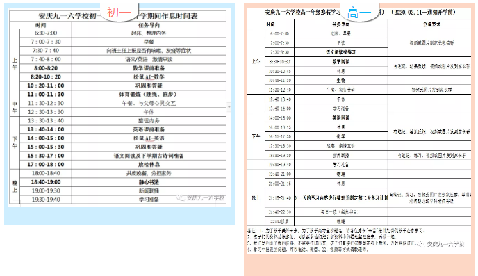 各年级制定了科学、详尽的假期学生作息时间表