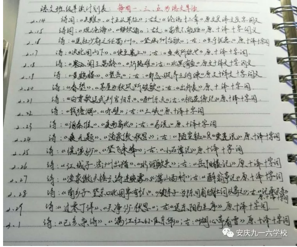 班主任和科任老师每天公布学习计划